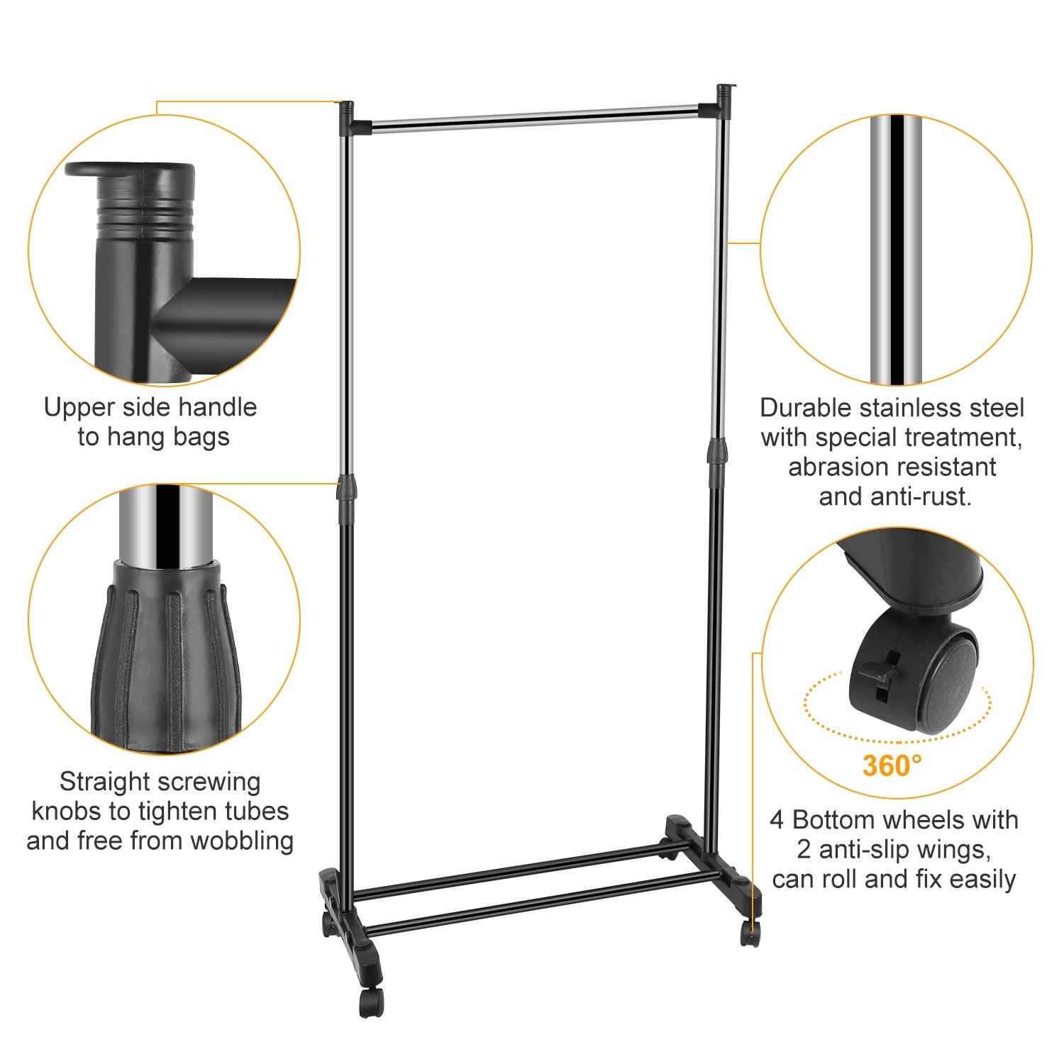 **3.12ft-4.80ft Adjustable Height*:Adjust the height of our clothing rack via screwing the straight knobs from 3.12ft to 4.80ft. Adjust height according your needs.