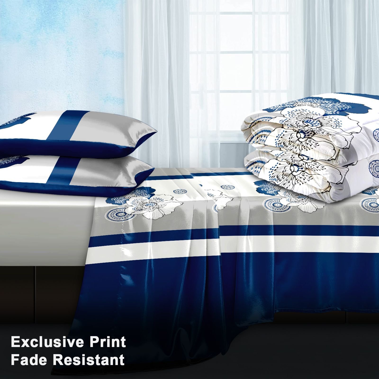 1.4 Piece Soft All-Season Washed Microfiber And Viscose Comforter Set In A Bag, Full/Twin/Queen/King/Calking Bedding Set With Comforter, Sheet, Pillowcases & Shams, Print, Flowerd, Moisture-Wicking, Silky Soft Texture, Cooling, Breathable, Easy Care