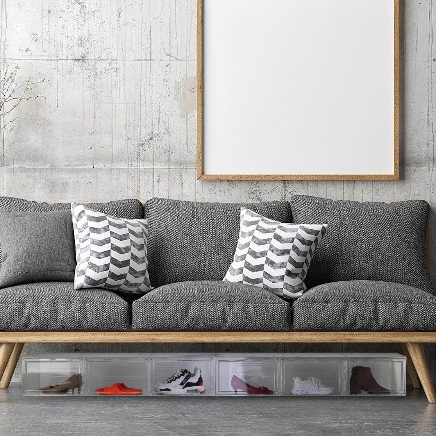 *Super Large Storage Space*:Each shoe box measures 14.1x8.66x11.26in; which fits men’s shoes up to US size 12 and women’s shoes US 13. Suitable for sneakers; flats; sandals; heels; slippers; and etc..