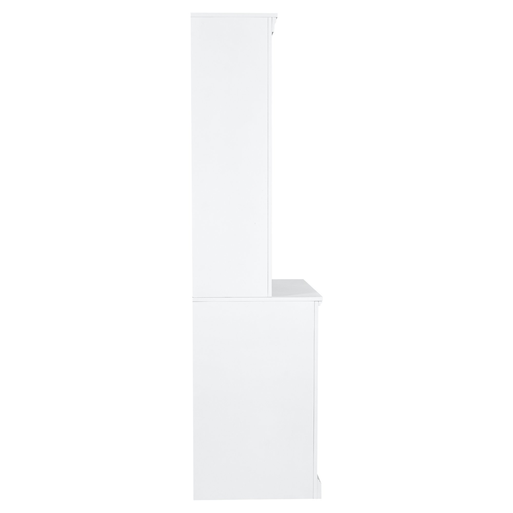 Product NameBookcaseColorWhiteStyleModernShapeRectangleFrame MaterialSolid WoodBoard MaterialMDFFinish TypePainted FinishCapacity45lbs/ShelfNumber of Adjustable Shelf1Adjustable FeetYesNumber of Drawers1Number of Doors2Number of packages2Assembly RequiredAbout 60 MinutesCountry of OriginVietnam