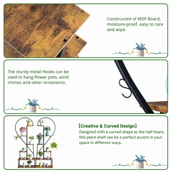 Home > Artisasset 2pcs 6 Layers Half Heart Iron Wood Suitable For Garden Balcony Patio Lawn Home Decoration Plant Stand Flower Pot Stand Iron Flower Stand Bl