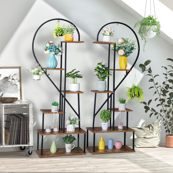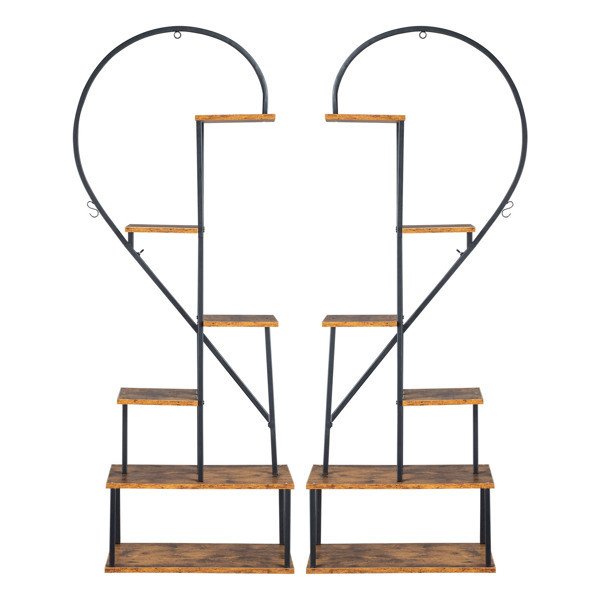 Artisasset 2pcs 6 Layers Half Heart Iron Wood Suitable For Garden Balcony Patio Lawn Home Decoration Plant Stand Flower Pot Stand Iron Flower Stand Bl