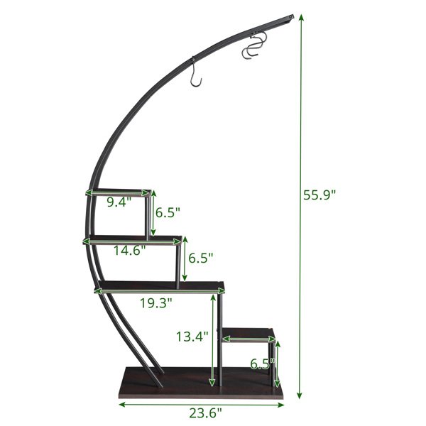 Artisasset 5 Layers Semicircle Iron Wood Suitable For Garden Balcony Patio Lawn Home Decoration Plant Stand Flower Pot Stand Iron Flower Stand Black