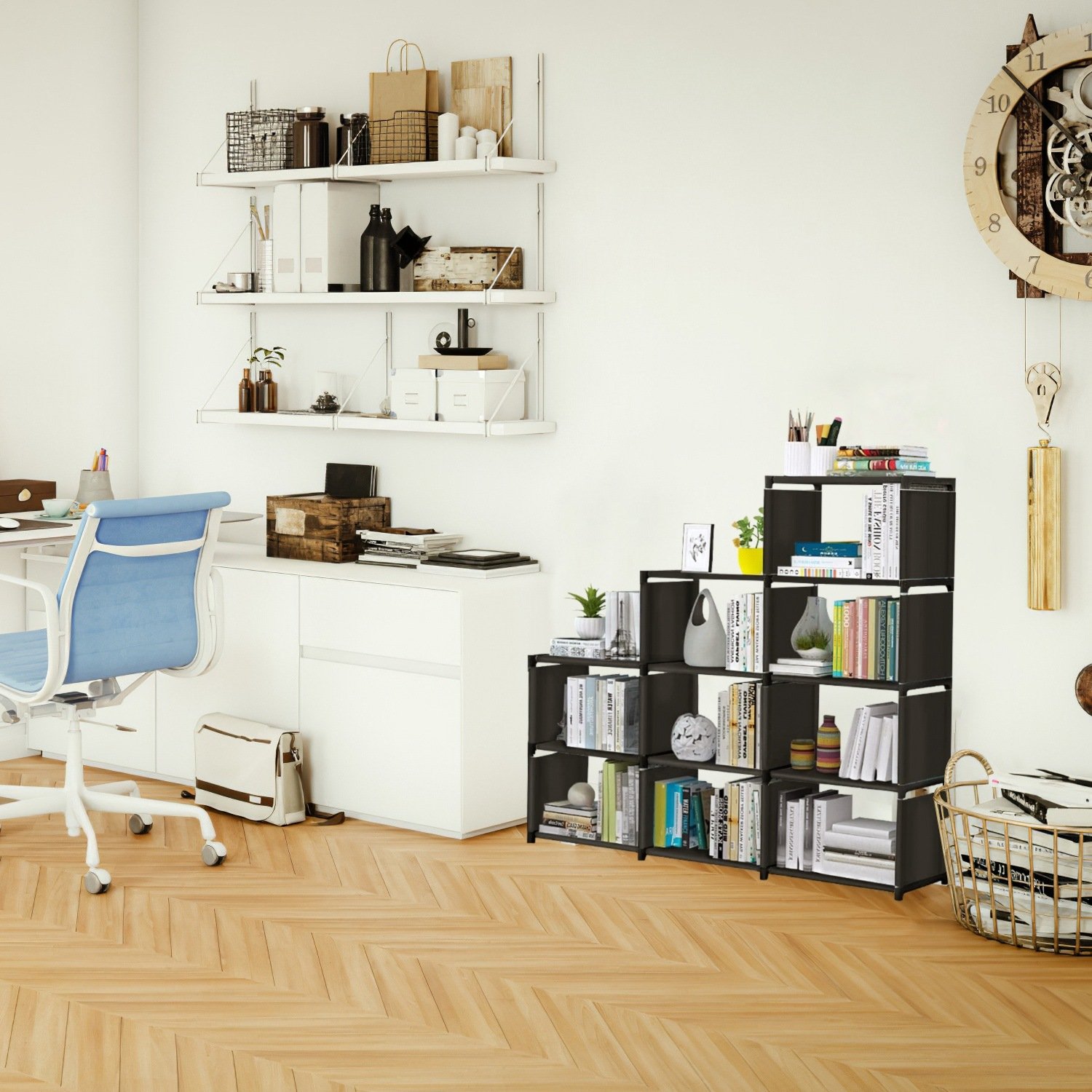 *Customized Combination*:9Pcs Cube organizer can be flexibly installed to different shapes according to your preference. You can assemble these shelves to vertical 3pcs 1x3 cubes,horizontal 2x3x4 cubes and any other shapes to adapt to your limited space.
