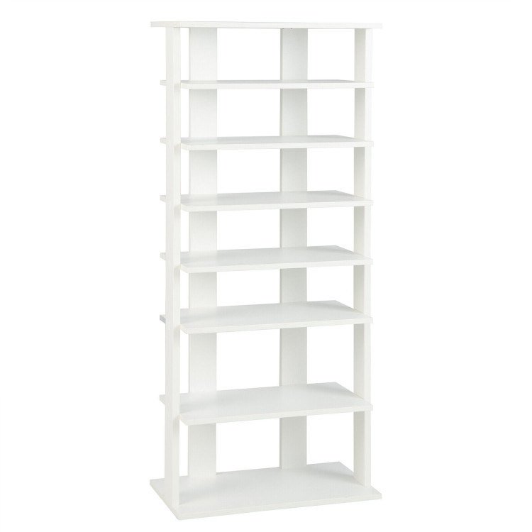 1.7-Tier and Double-Row Rack: This vertical shoe rack helps to keep your entryway away from messes. Double rows of this 7-tier shoe rack provide ample storage spaces for more pairs of shoes, making them ordered. What's more, the open design allows you to take your shoes quickly and easily.