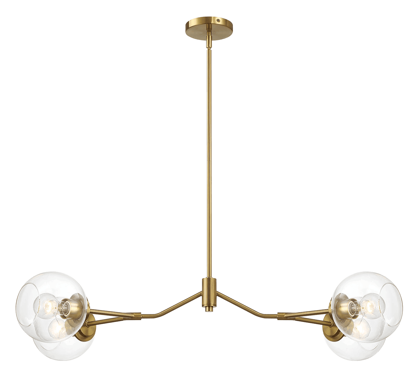 Boasting four lights and clear glass, this fixture provides ample lighting for any occasion. The sleek design and perfect size of 36"L × 20"W × 7.25"H make it an ideal fit for any room in your home. Bring a sense of beauty and warmth into your living space with this stunning chandelier.