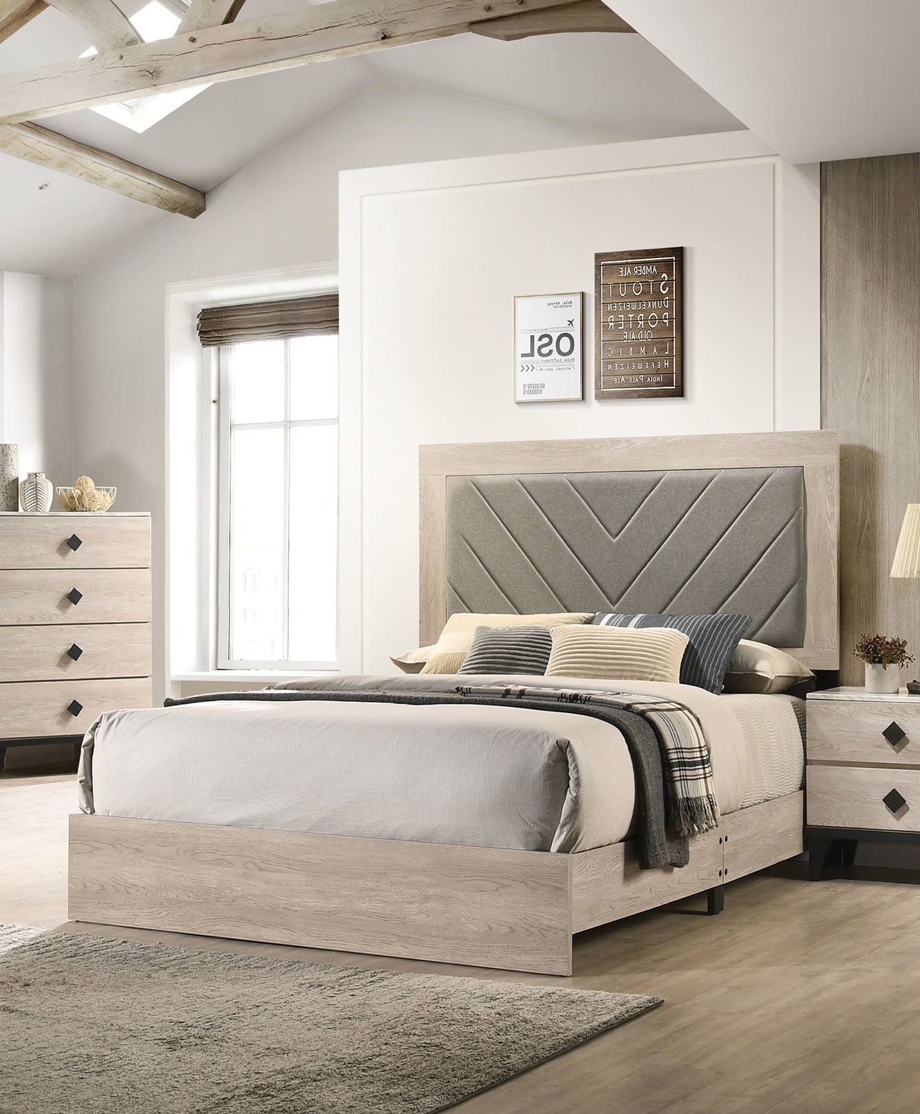 Contemporary 1pc Cream Finish Eastern King Size Bed Bedroom Furniture Gray V-Design Headboard Rubberwood 1pc Bedframe Contemporary 1pc Cream Finish Eastern King Size Bed Bedroom Furniture Gray V-Design Headboard Rubberwood 1pc Bedframe Contemporary 1pc Cream Finish Eastern King Size Bed Bedroom Furniture Gray V-Design Headboard Rubberwood 1pc Bedframe