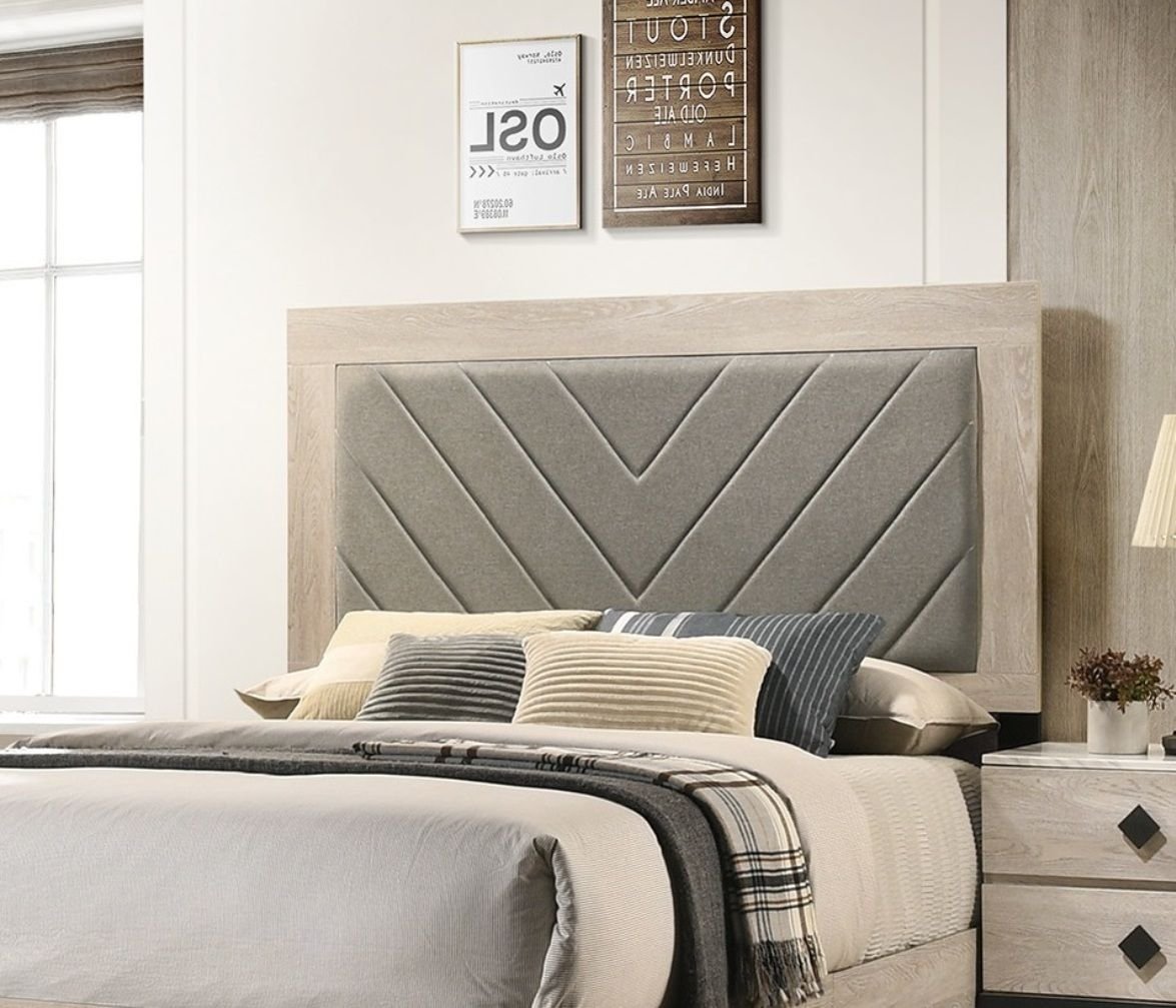 Contemporary 1pc Cream Finish Eastern King Size Bed Bedroom Furniture Gray V-Design Headboard Rubberwood 1pc Bedframe