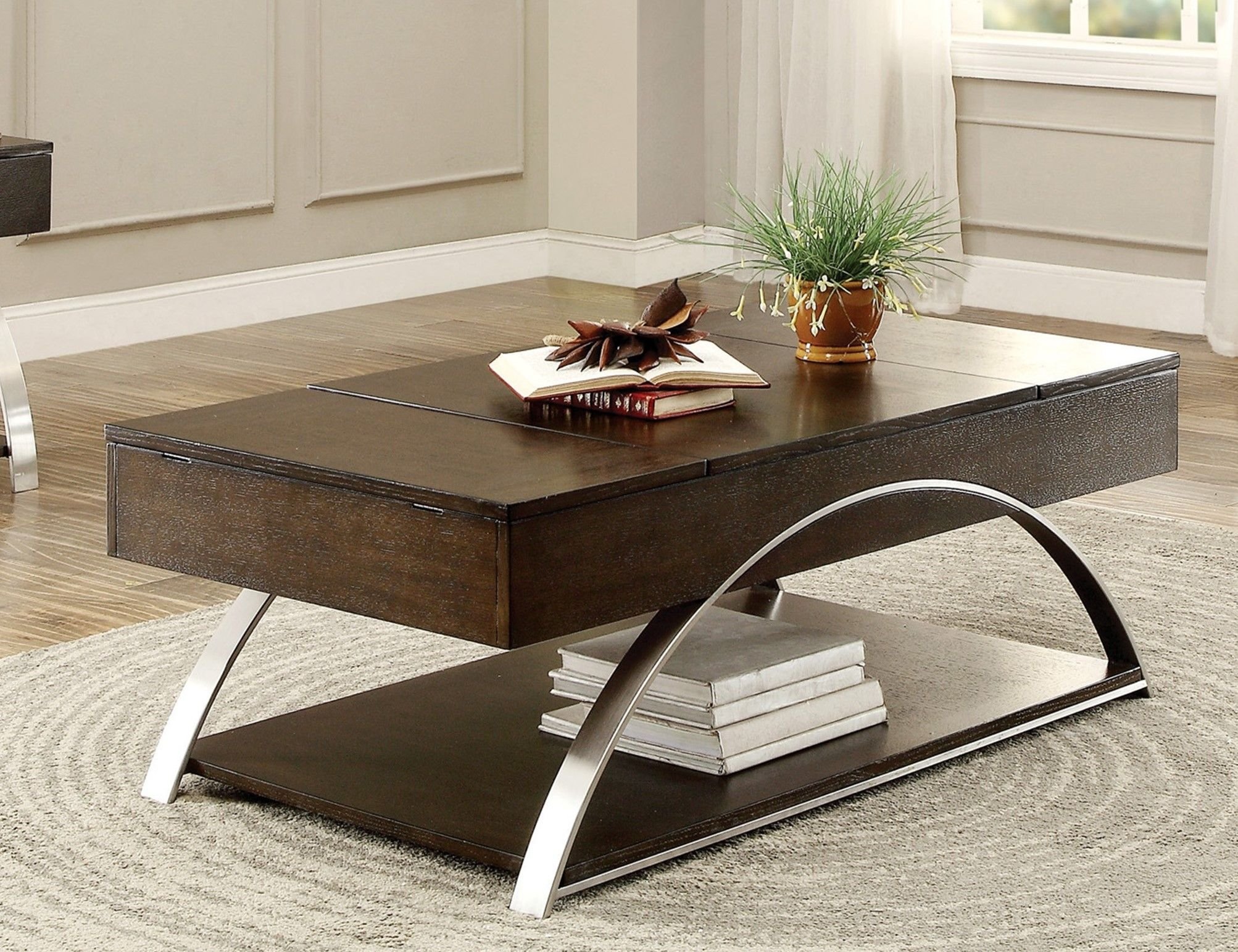 Home > Modern Living Room Furniture 1pc Lift Top Coffee Table with Display Shelf Espresso Finish Wood Chrome Metal Finish Unique Style Cocktail Table