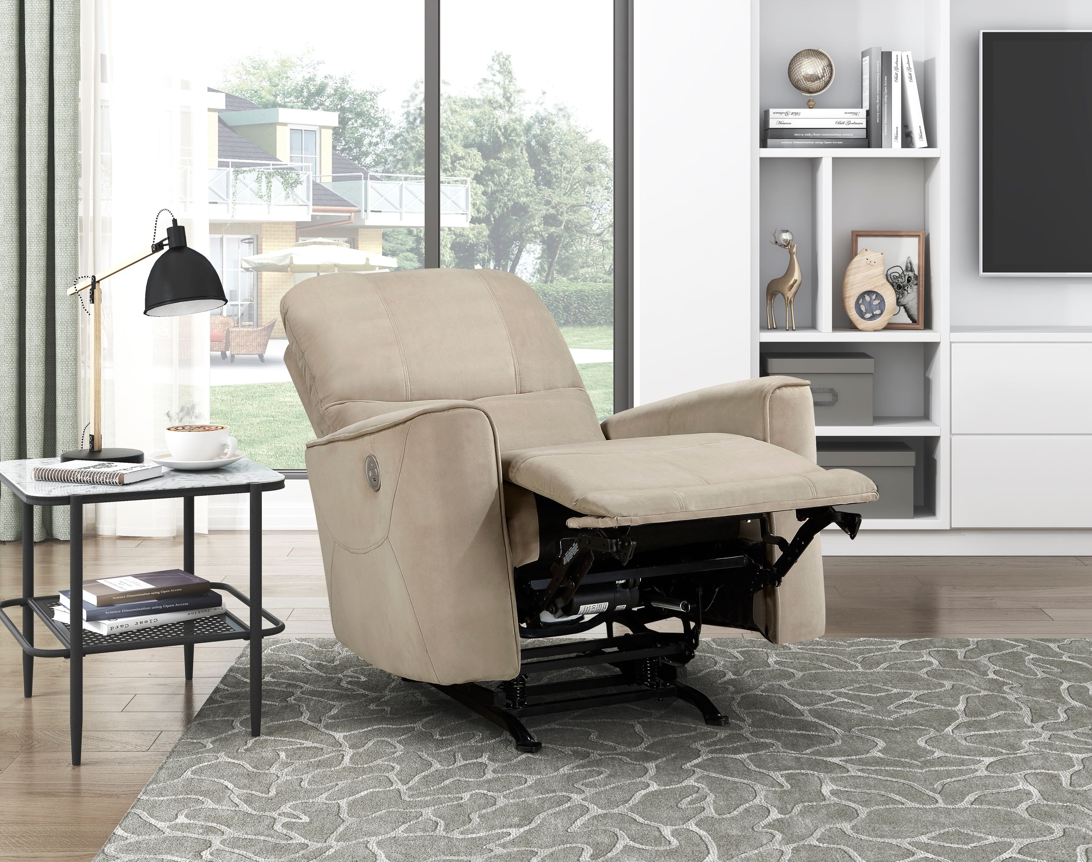 Modern Living Room 1pc Power Rocker Reclining Chair Light Brown Velvet Upholstery Solid Wood Frame Luxury Home Furniture