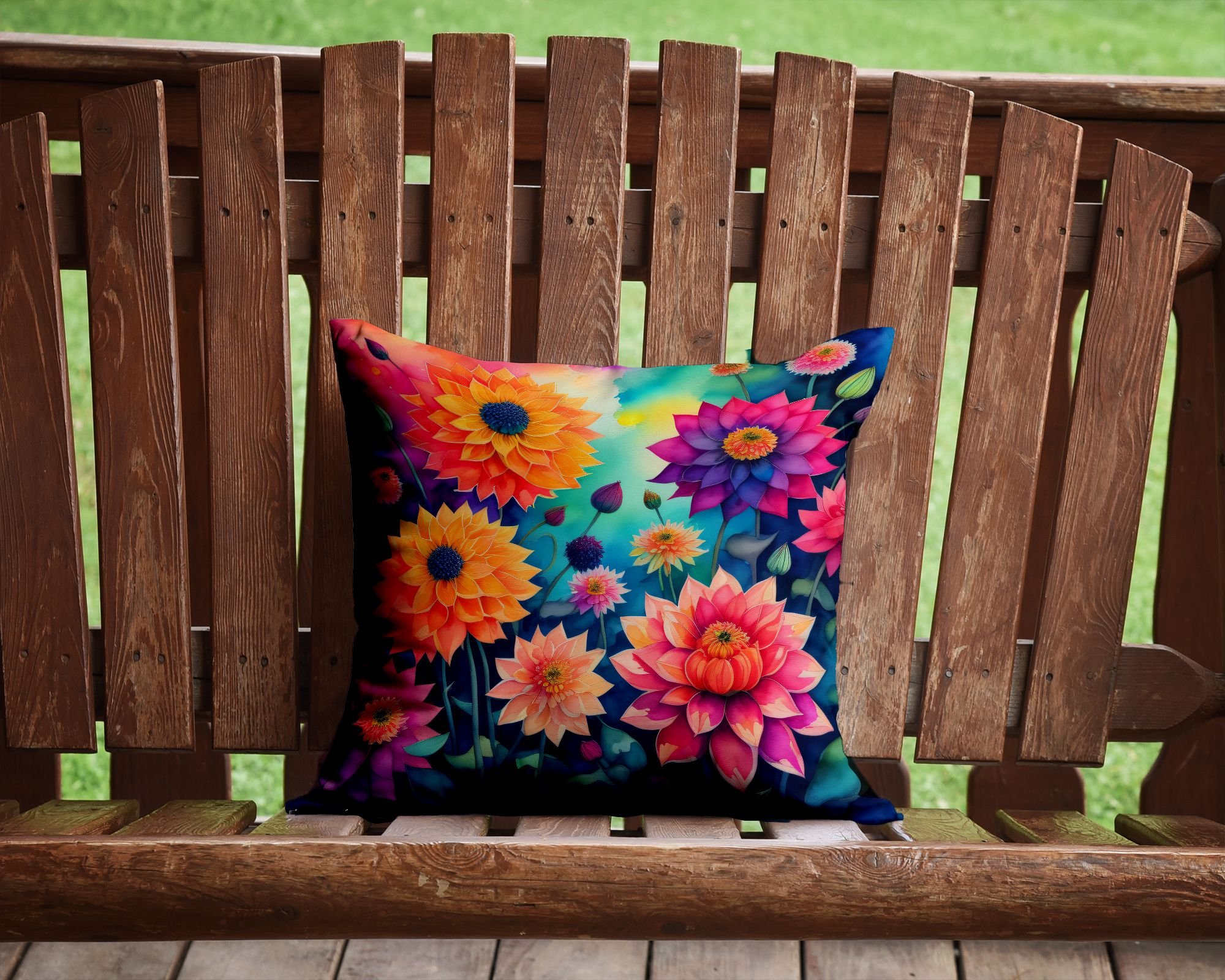 Colorful Dahlias Throw Pillow Machine Washable, Indoor Outdoor Decorative Pillow for Couch, Bed or Patio, 14Hx14W