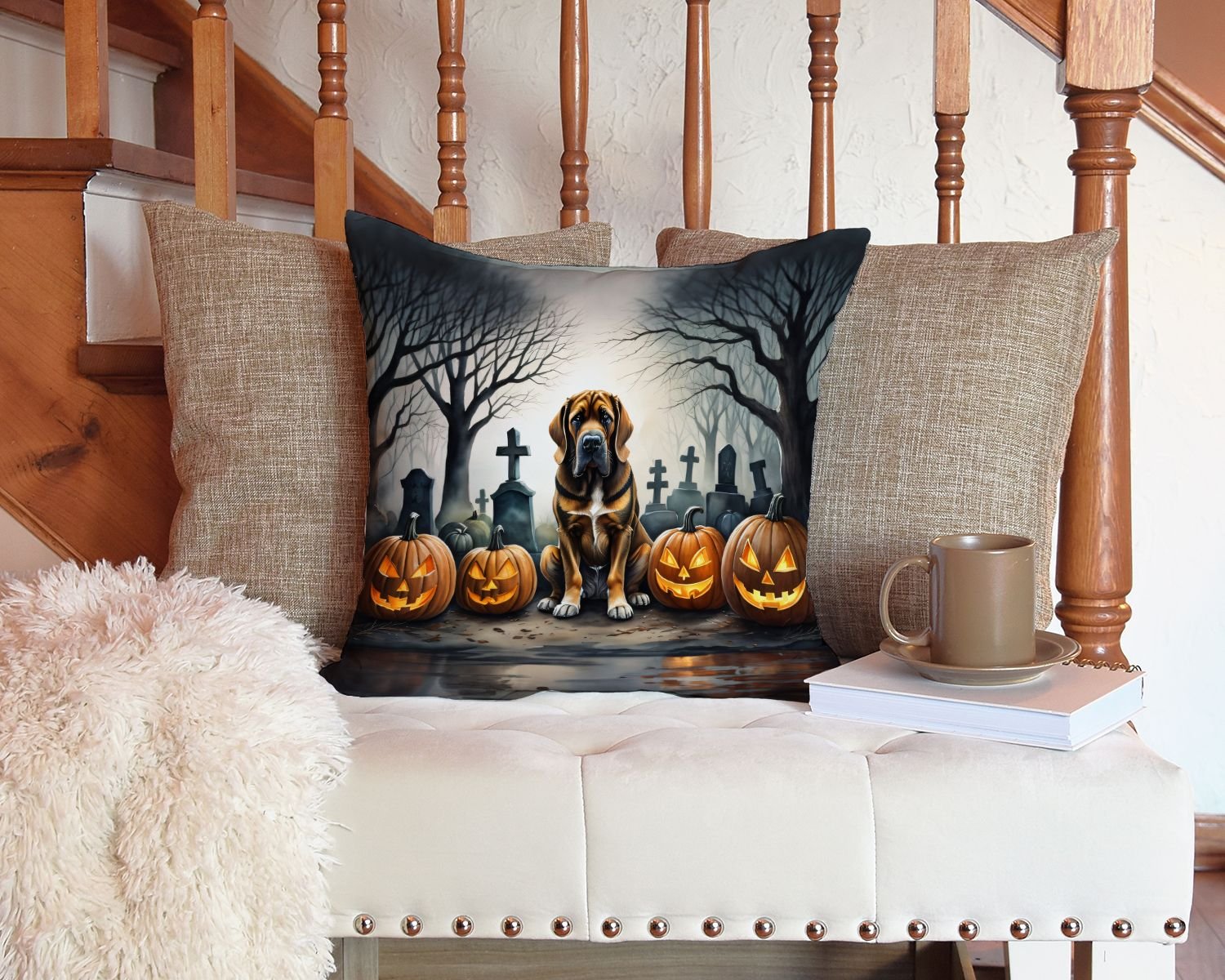 Throw Pillow featuring breed specific Bloodhound artwork. Celebrate Halloween with this Halloween Pillow. Add a touch of vibrancy and comfort to your outdoor seating with Caroline's Treasures Fabric Decorative Pillow. Measuring approximately 14 inches by 14 inches, this outdoor pillow is crafted to elevate the appeal of your patio furniture, infusing it with vivid color and artistic flair. The pillow includes a 100% Polyester Fabric sham filled with a quality pillow form to provide superior comfort. Innovatively made from our brand new material, specifically woven for its water resistance, this pillow is designed for durability. The soft canvas fabric offers versatility in use, fit for your indoor couch or your outdoor patio, porch, or veranda. The fabric is dyed with colorfast dyes built for resilience against weather conditions, ensuring the pillow retains its beauty over time. Constructed by sewing three fabric pieces to create a sham, the polyester insert is then nestled inside to form the pillow, resulting in an overstuffed pillow that maintains its shape. Both the sham and the pillow insert are proudly made in the United States. As the pillows are handcrafted, there may be minor variations in size, further enhancing their unique charm. Experience comfort in style with Caroline's Treasures Fabric Decorative Pillow.