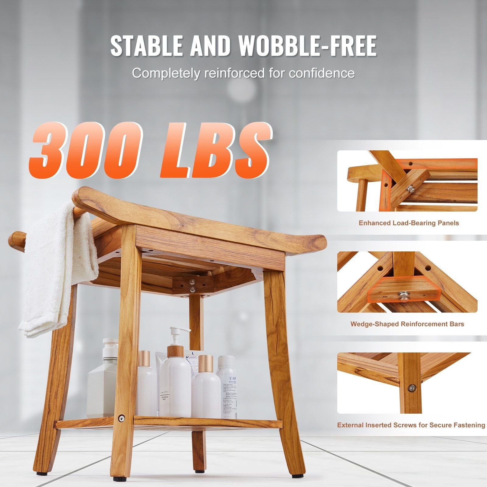 Looking for a bathroom organizer or a reliable shower seat? Look no further than our waterproof teak wood shower bench. Stronger than bamboo, it holds up to 300 lbs with dual-layer construction. With the handle, it can be used as a side table or shoe rack and fits the bathroom and living room.