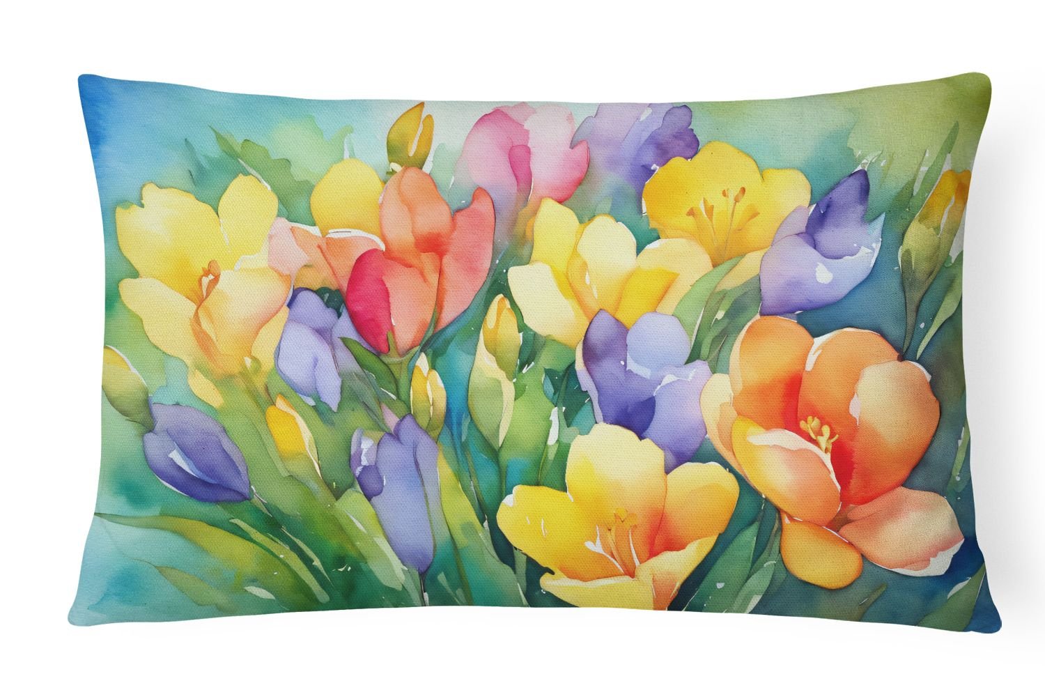 Home > Flowers in Watercolor Throw Pillow Throw Pillow for Indoor Couch Bed Outdoor Patio Washable, Freesias 1567,12Hx16W