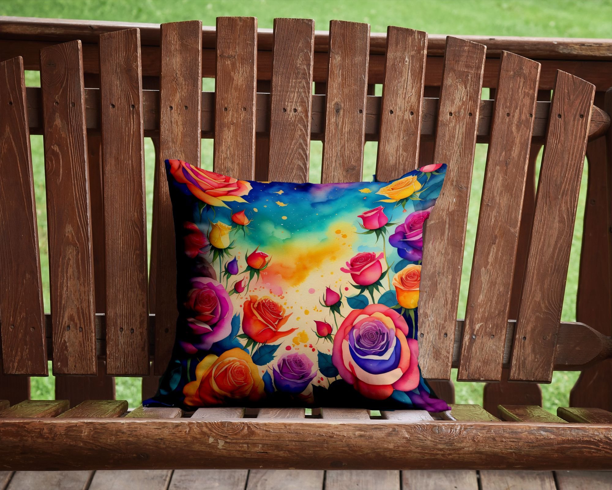 Home > Colorful Roses Throw Pillow Machine Washable, Indoor Outdoor Decorative Pillow for Couch, Bed or Patio, 14Hx14W