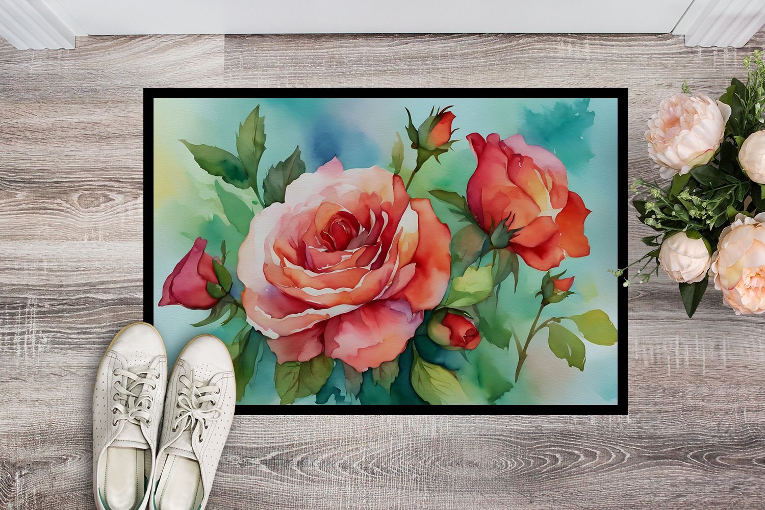NEW Oklahoma Roses in Watercolor Doormat Front Door Mat Indoor Outdoor Rugs for Entryway, Non Slip Washable Low Pile, 18H X 27W