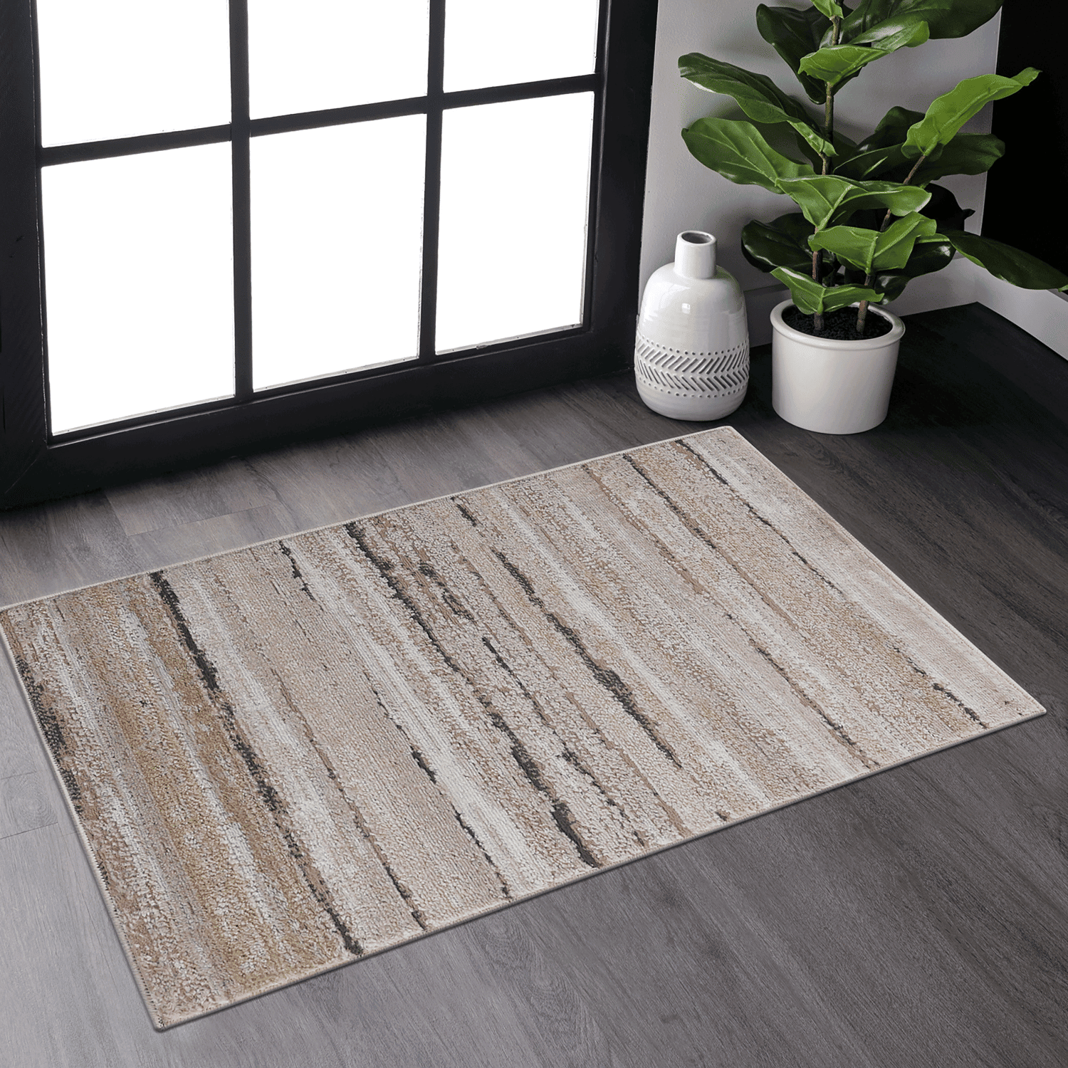 Home > LOOM & LUXE Collection 2X3 Brown /Striped Non-Shedding Living Room Bedroom Dining Home Office Stylish and Stain Resistant Area Rug