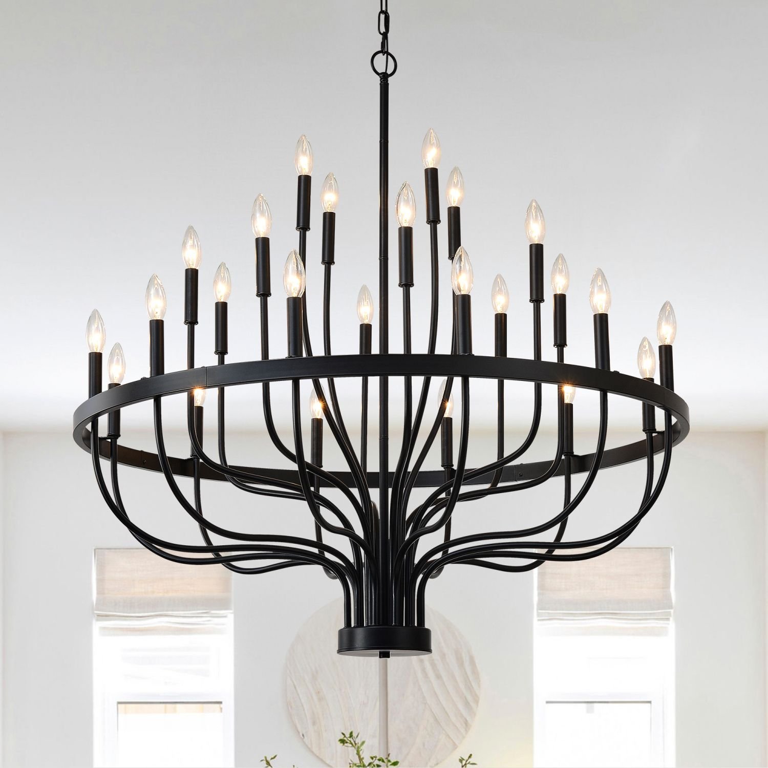 24-Light Black Chandelier Industrial Iron Candle Chandelier Modern Suspended Farmhouse Chandeliers Pendant Light Fixtures for Dining Room Bedroom Livi