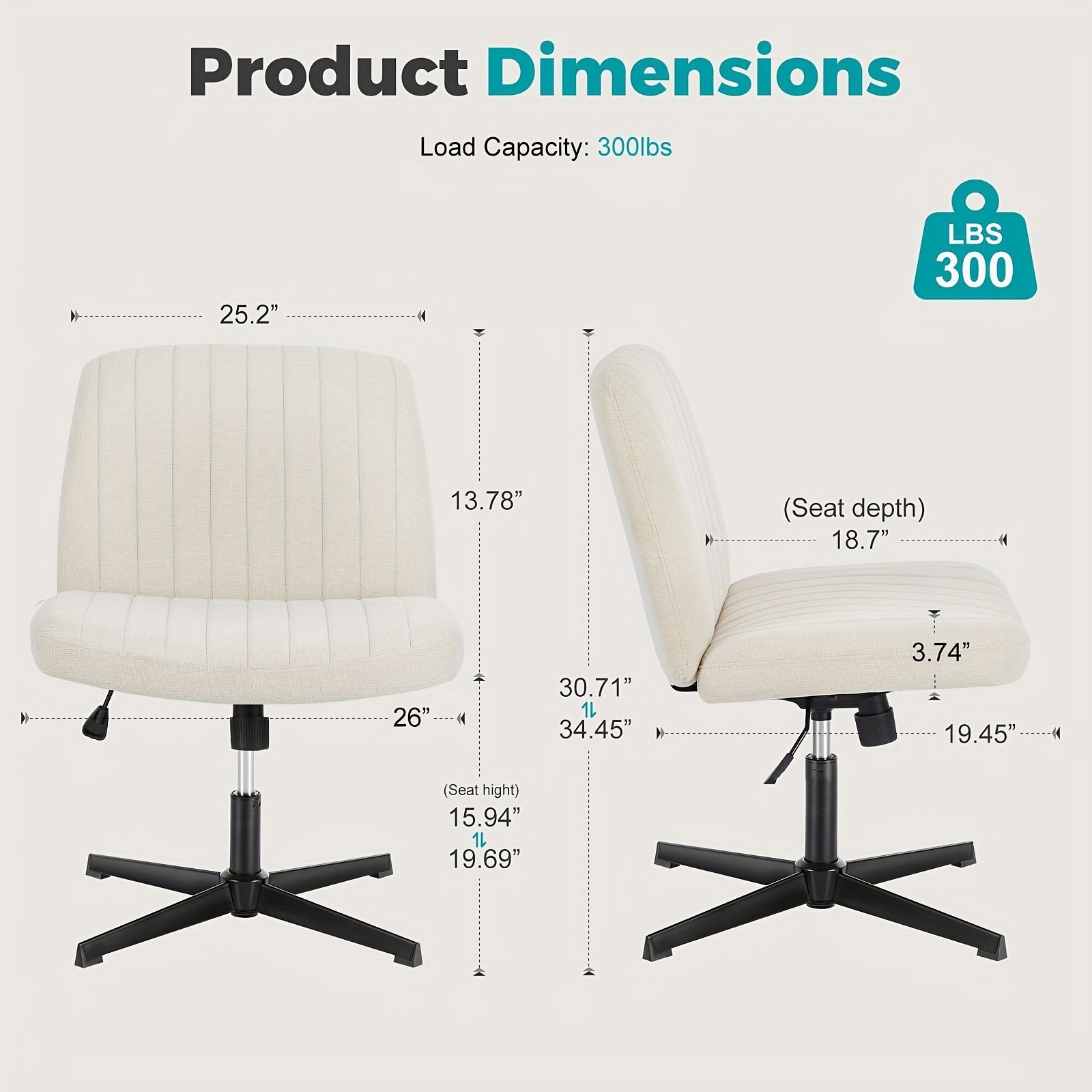 Cross Legged Office Living Room Rocking Gaming Chair Armless Wide Desk Adjustable Swivel Fabric Task Vanity Home Office