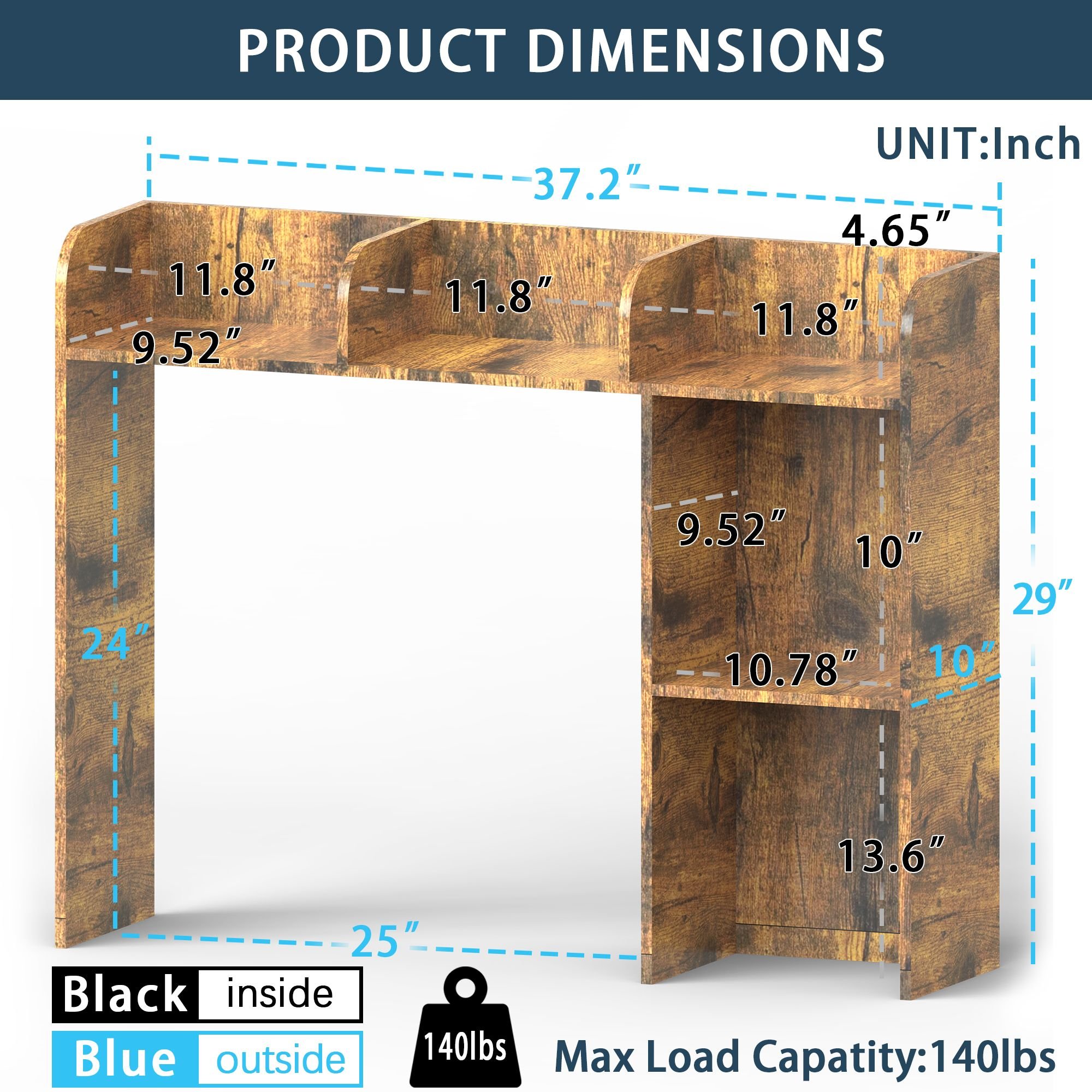 2. Premium Quality Materials:The desk shelf organizer is crafted from high-quality 12mm engineered wood, ensuring a sturdy structure with excellent weight-bearing capacity up to 140lbs.Overall dimensions are 37.2"W x 10"D x 29"H.