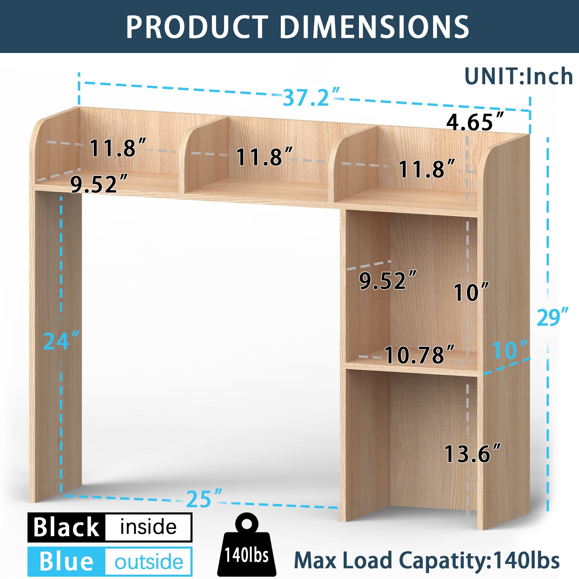 2. Premium Quality Materials:The desk shelf organizer is crafted from high-quality 12mm engineered wood, ensuring a sturdy structure with excellent weight-bearing capacity up to 140lbs.Overall dimensions are 37.2"W x 10"D x 29"H.