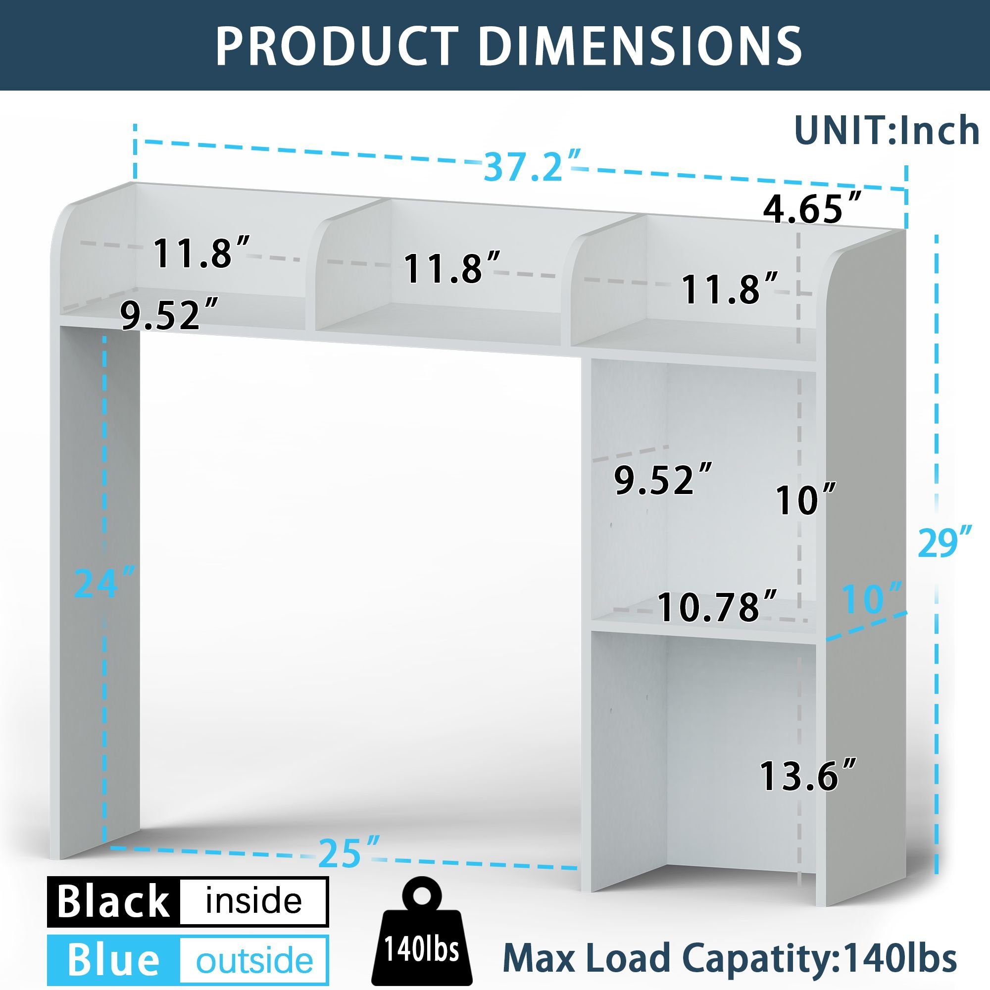 2. Premium Quality Materials:The desk shelf organizer is crafted from high-quality 12mm engineered wood, ensuring a sturdy structure with excellent weight-bearing capacity up to 140lbs.Overall dimensions are 37.2"W x 10"D x 29"H.