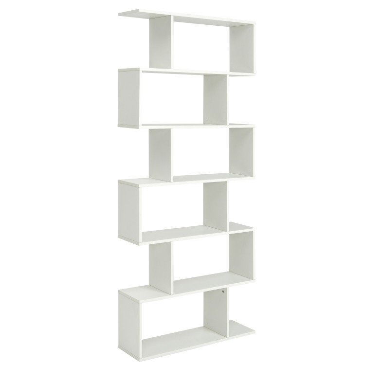 Home > 6 Tier S-Shaped Bookshelf Storage Display Bookcase Decor Z-Shelf