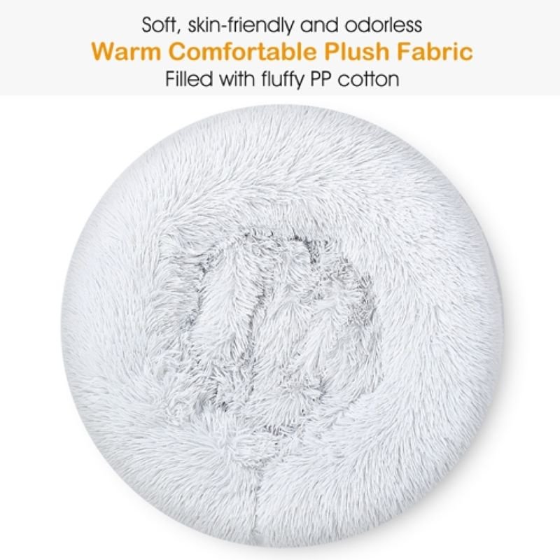 1.This dog bed is made from high-grade plush materials with fluffy PP cotton filling, soft, odorless and no static to keep your pet warm and comfortable.