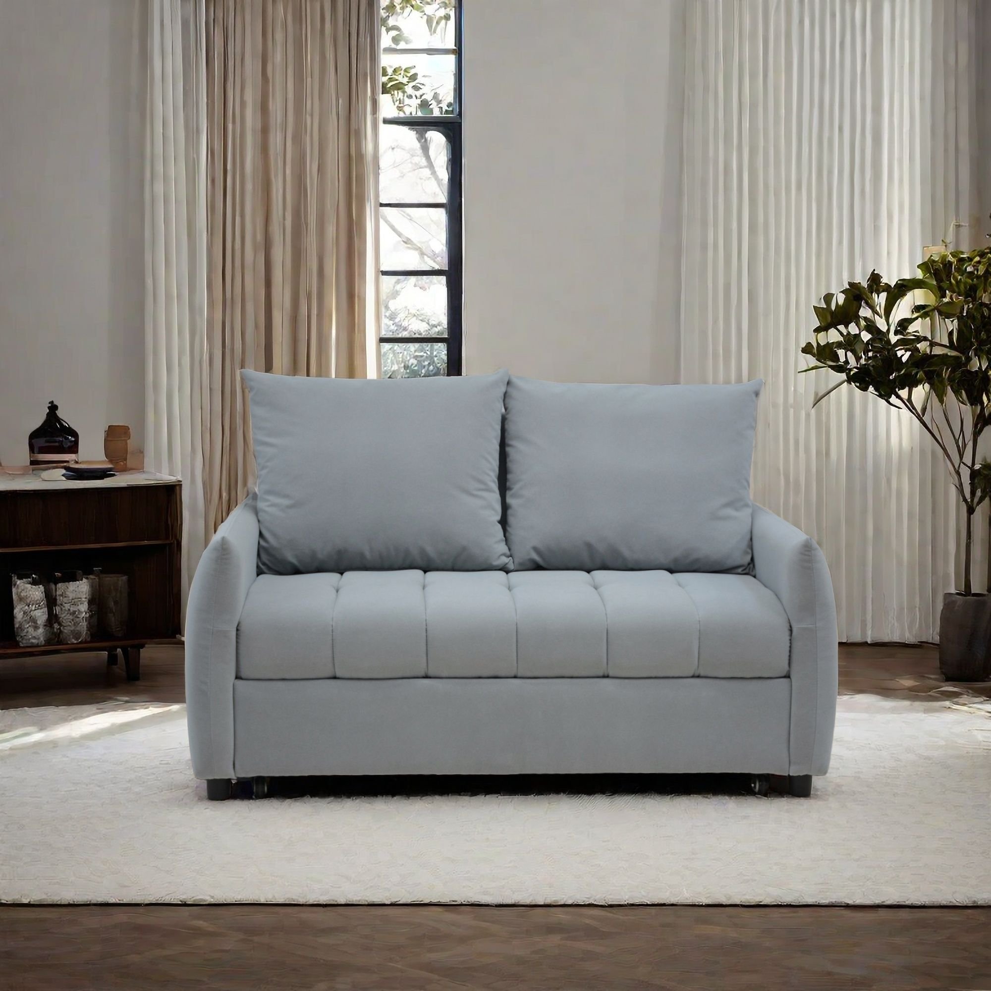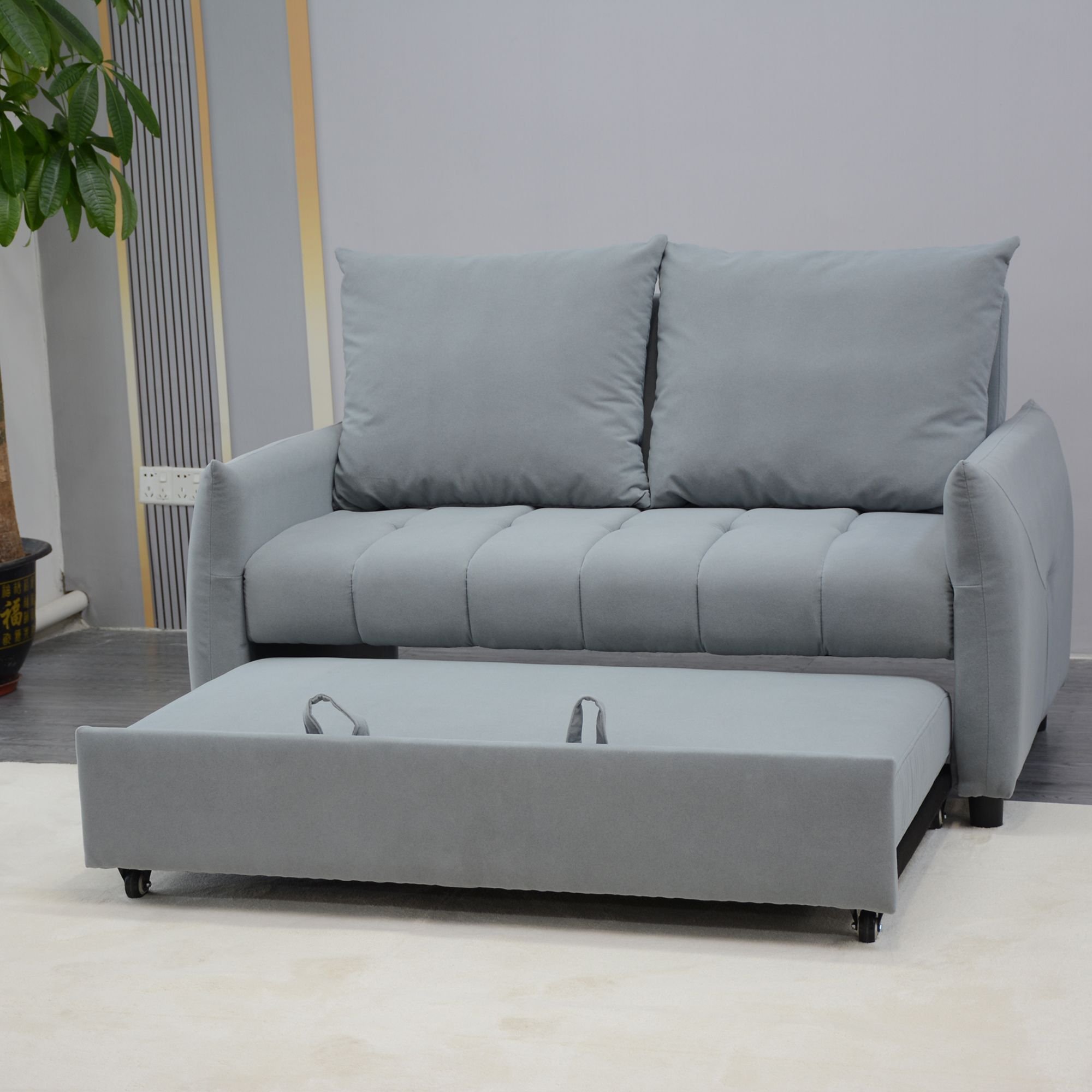 Home > 57.48" Big Size Sofa Bed Line Fabric Futon Couch with Adjustable Backrest, Modern Loveseat Sofa Sleeper for Living Room